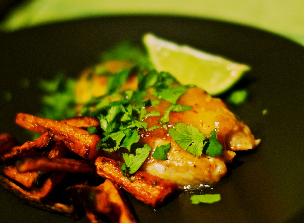 Remove from the oven…sprinkle some chopped cilantro around, give it a good squeeze of fresh lime juice, and there you have it!