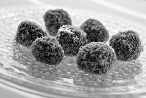 For the Rum Truffles, roll chocolate in unsweetened coconut flakes. For the Grand Marnier truffles, roll chocolate in walnut meal/orange zest mixture.