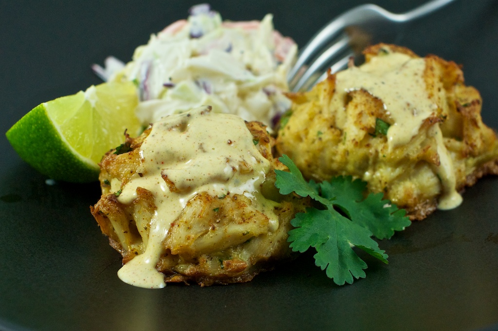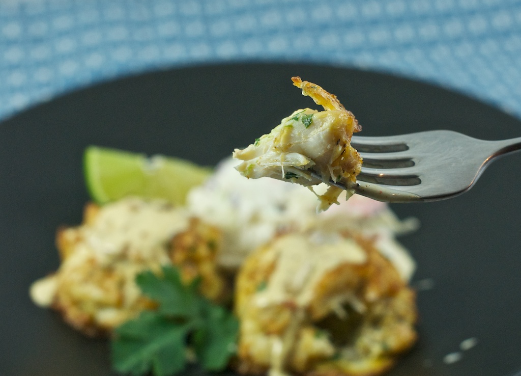 While baking, combine the sauce ingredients in a small bowl and mix well. Adjust seasoning to taste. Serve crab cakes with a dollop of sauce on top and limes slices to the side for spritzing!