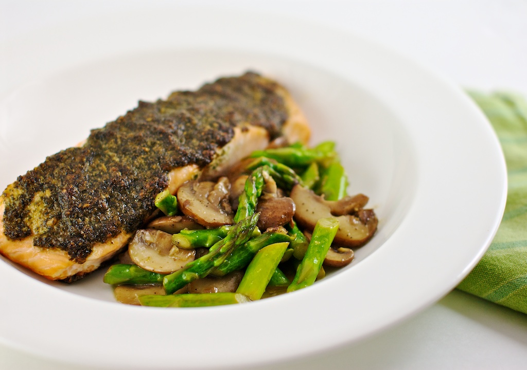 Taste pesto and adjust seasoning if necessary. (Now stop tasting the pesto or you won’t have enough for the salmon!)