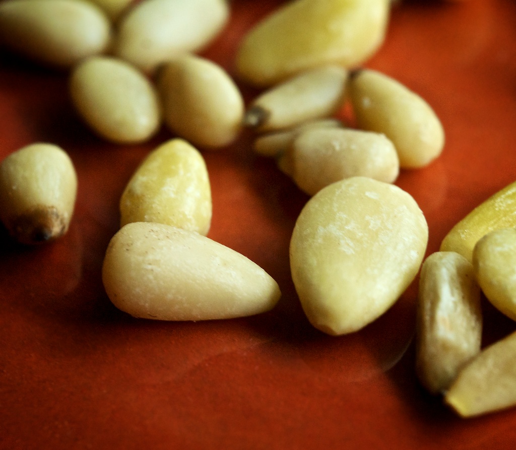 Several months ago, I suddenly developed a strange, bitter, metallic taste in my mouth. I only noticed it when eating or drinking – and as you might guess, I spend a not insignificant amount of time eating and drinking. The first time it occurred, it lasted maybe 3 days and I assumed it was a prelude to a sore throat or cold. It went away, I never got sick…all seemed well. Then it happened again. The second time it lasted for over a week. The bad taste is not subtle…I couldn’t taste my food, and even worse, wine tasted horrible! I did some internet research with “the google” and found that many people have reported this problem after eating pine nuts. I had been eating pine nuts…and dang it, I LOVE pine nuts! Was this something else I’d never be able to eat? Just last fall I had two episodes of my eyelids swelling after eating shrimp, and I haven’t had shrimp since for fear of a more violent reaction. Giving up something else I love, such as traditional pesto sauce, just seemed unfair!