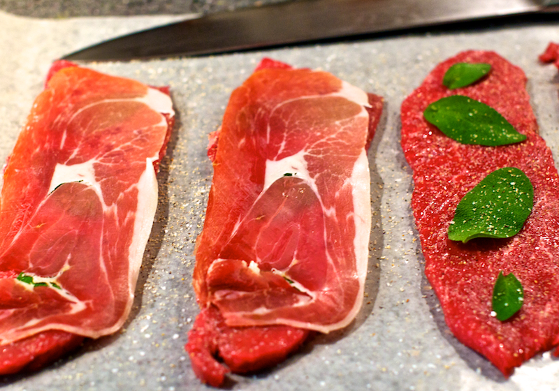 Lay out the veal on a sheet of waxed paper. Season the veal with salt and pepper (go easy on the salt, since the prosciutto is very salty).