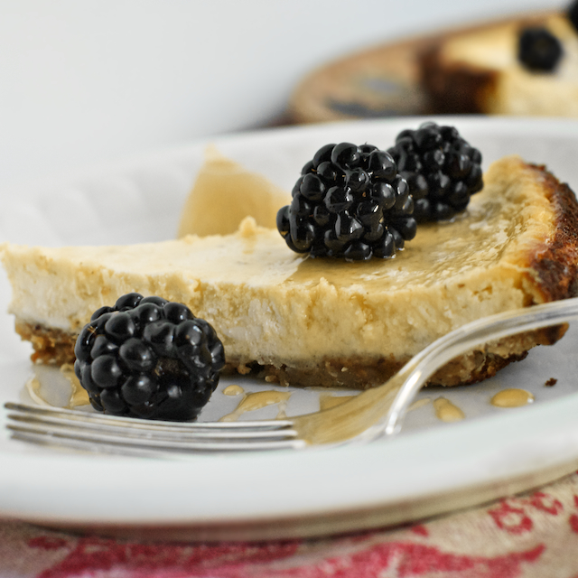 Served simply with a scattering of ripe berries from the farmer’s market and a drizzle of honey, this cheesecake is a sophisticated and sweetly delicious dessert. I’m looking forward to having more!