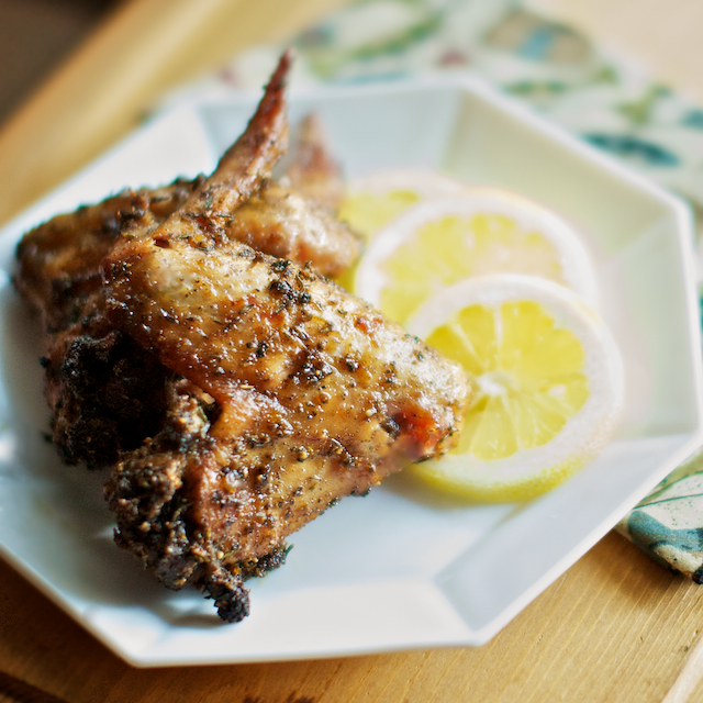 In my humble opinion, chicken wings are good any time of the day or night. You can have them as appetizers, set them out as party food, or make a complete meal of them for dinner. If there are any leftover (rarely), I will eat them for breakfast! We were having a craving for the lemon-pepper wings we get from a local delivery service, but their wings (although delicious), are extremely salty. Salty as in “my lips are burning and I need a gallon of water” salty. Instead of ordering out, I make up a lemon-pepper seasoning mix that was lower in salt, plus it was fresh and free of preservatives and fillers that you might find in store-bought varieties. Then we grilled up some wings of our own!
