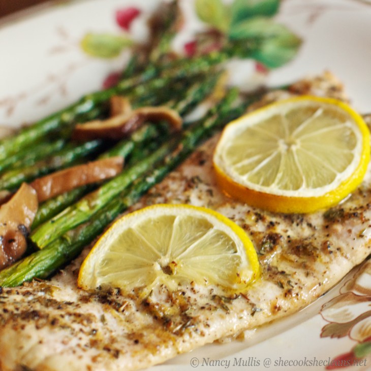 Flounder is a flat fish, with flaky white, mild-tasting meat. It is also a pretty lean fish, so to keep it from getting dry, it needs to be cooked fairly quickly with added fat for better flavor. Lemon is a classic flavor enhancer for fish of all kinds, and I didn’t stray from the traditional path here. Since I make up a big batch of lemon-pepper seasoning for chicken wings, there is usually some left over for sprinkling on pork chops or vegetables – and now fish! I swear, lemon-pepper seasoning is good on about everything!