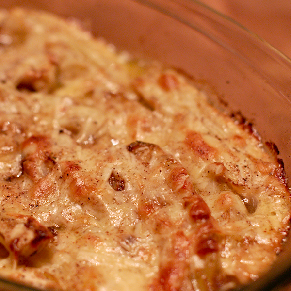 Season with salt and pepper, and cover with the Gruyere cheese. Lightly sprinkle nutmeg over the top (a little nutmeg goes a long way…), and pour the half and half into the dish. Bake for 15-20 minutes, or until bubbly and browned and fennel is tender. Serve hot.