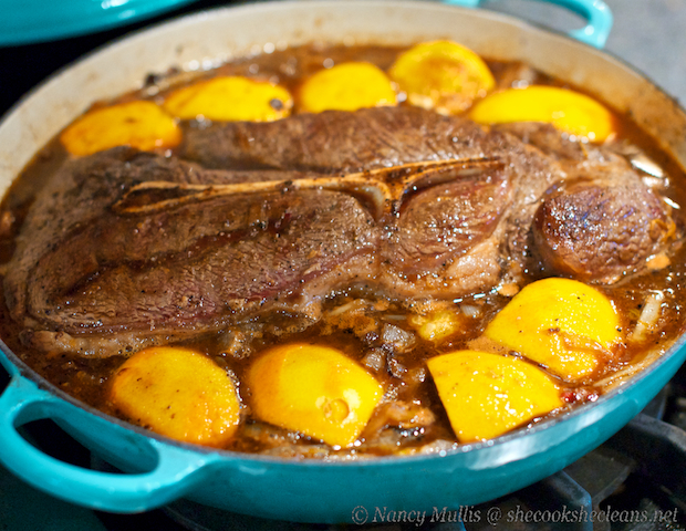 Back home, I was ready to break in the new braising pan with a new recipe. I had a nice grass-fed chuck roast in the freezer, but decided on some new flavors – fennel and orange. The orange really stands out in this dish, but isn’t overwhelming. I wanted it to be a spicier, but my red chile peppers were pretty mild. Next time I will kick it up a notch with crushed red pepper flakes for more heat.