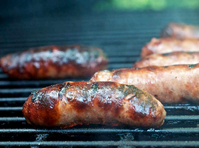 While the potatoes are cooking, grill the bangers – on an outdoor grill, or stove-top grill or grill-plate.